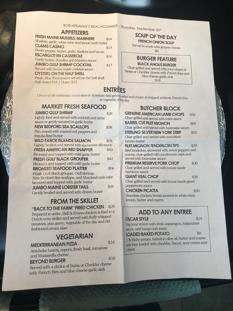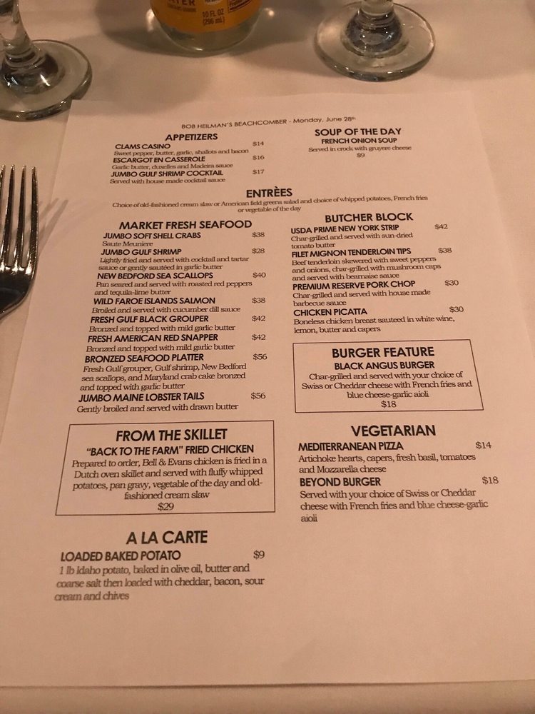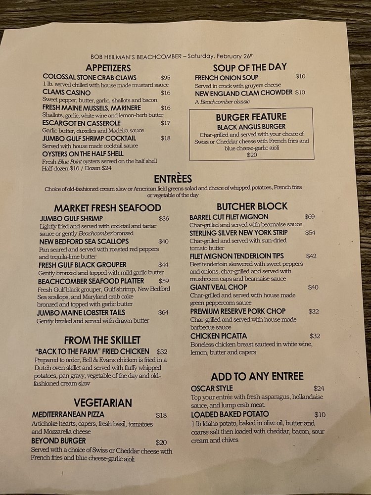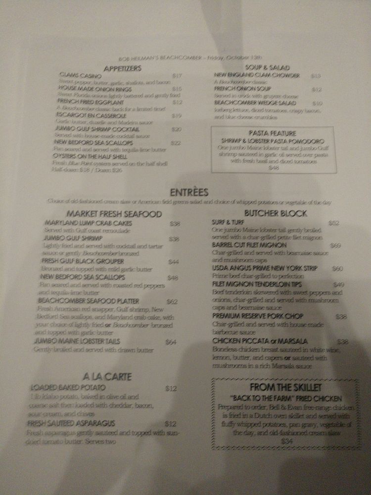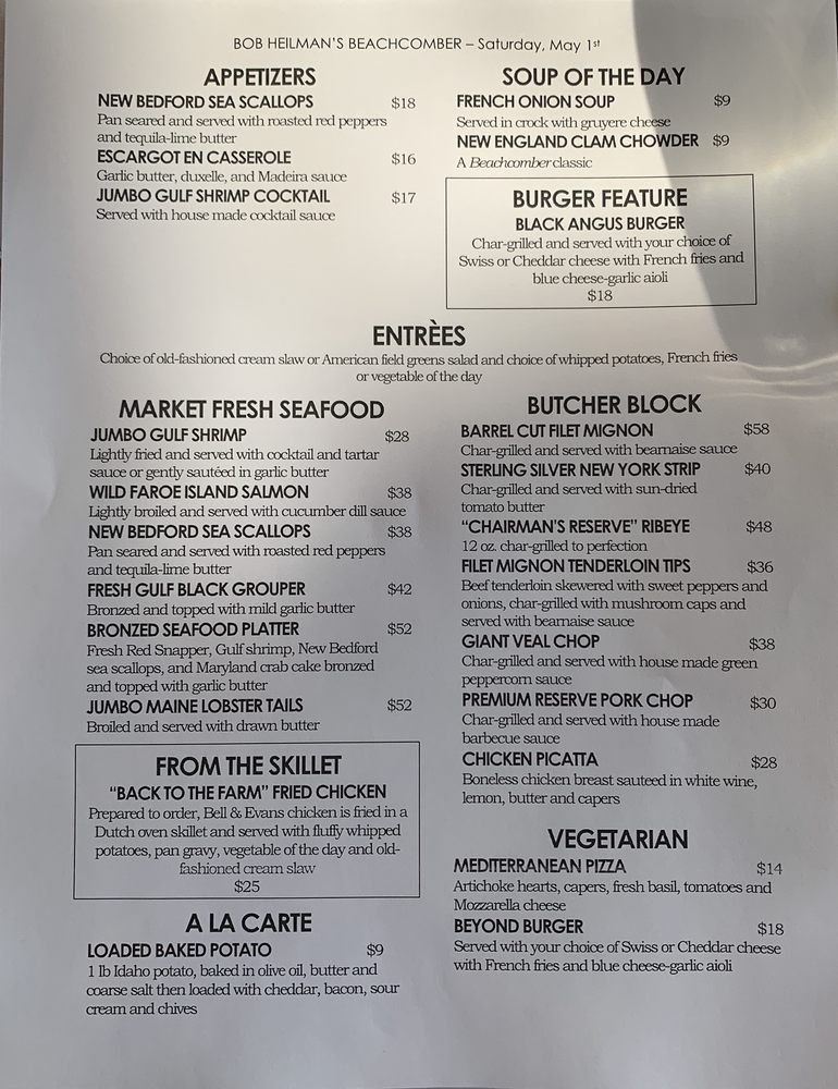 Bob Heilman's Beachcomber Menu (2025 Update)